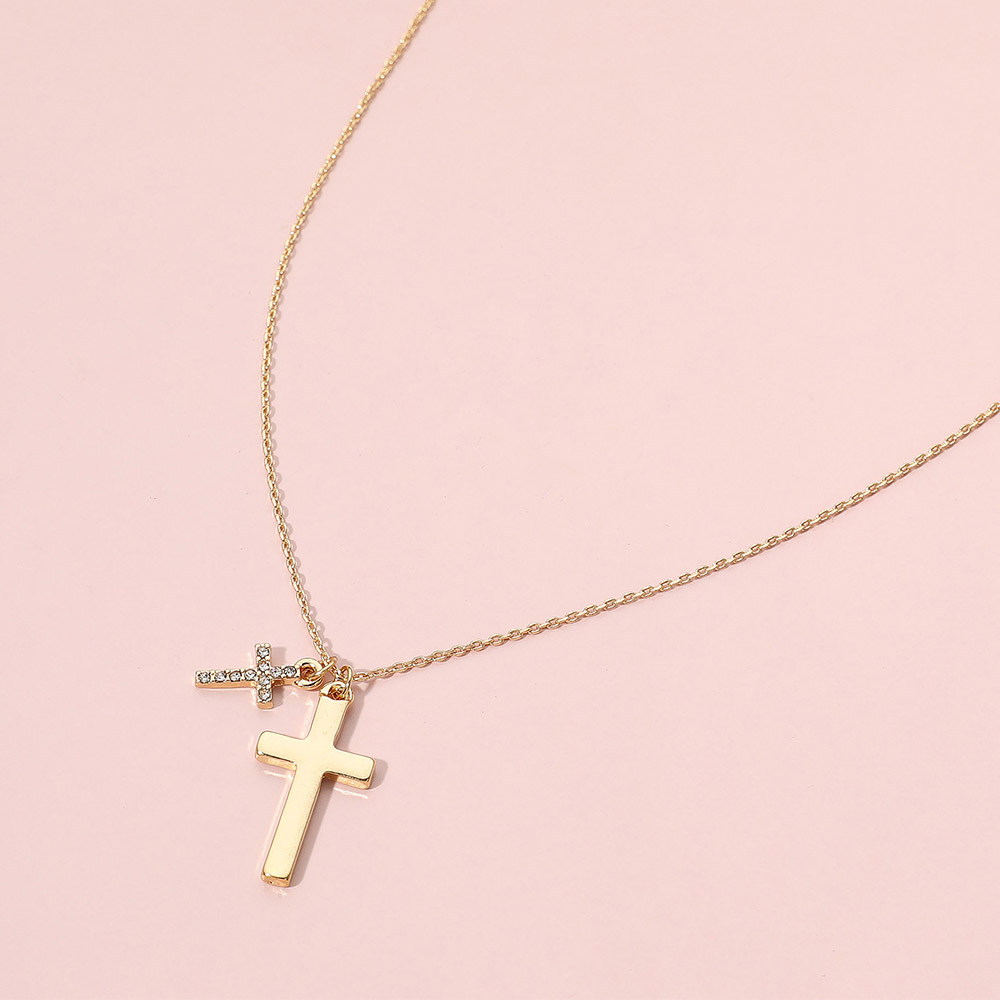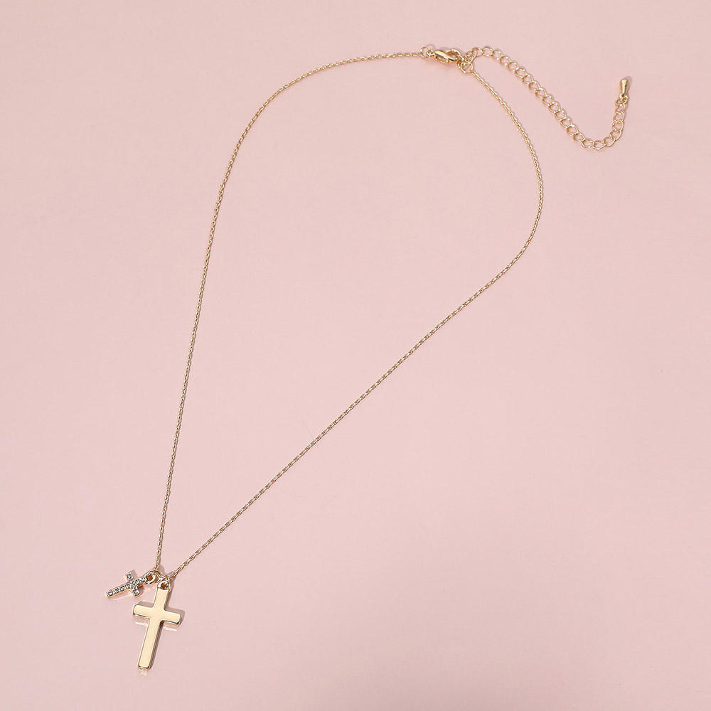 Hammered Brushed Metal Cross Pendant Toggle Necklace