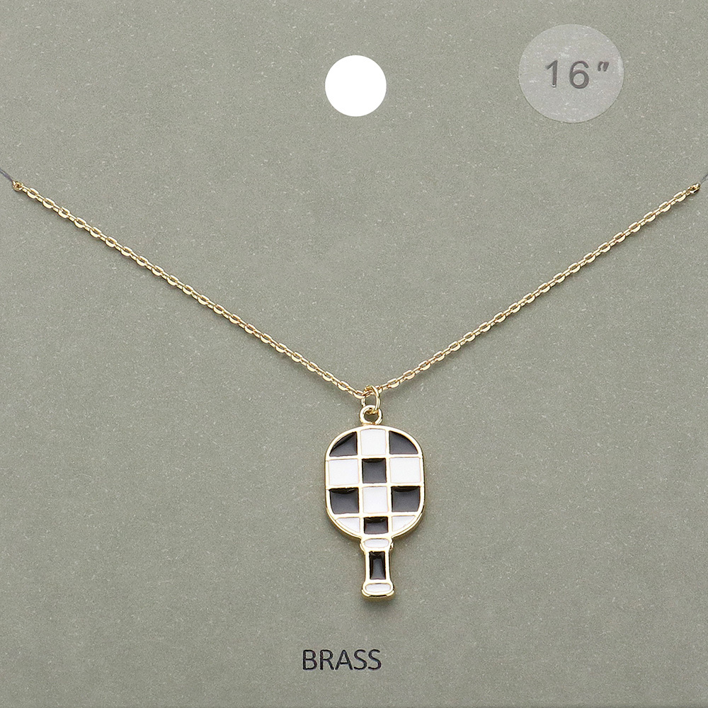 Enamel Checkered Pickleball Paddle Pendant Necklace