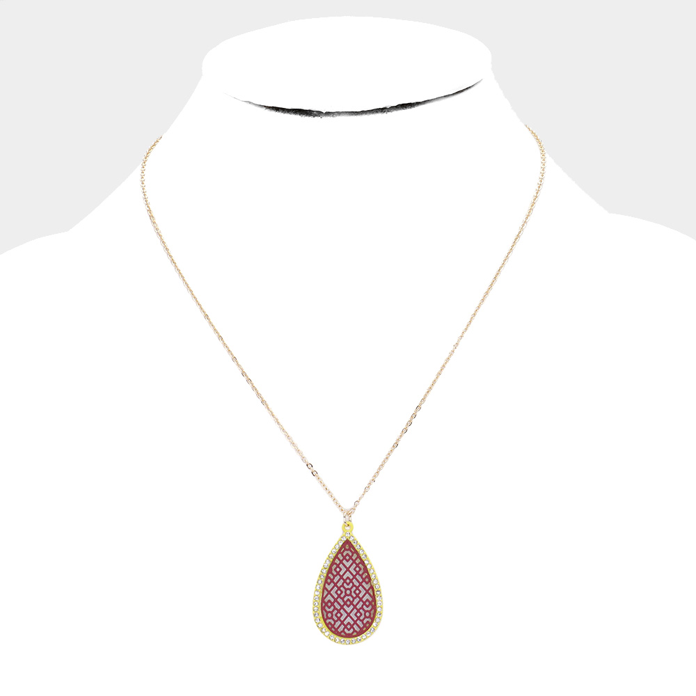 Filigree Rhinestone Pave Teardrop Pendant Necklace
