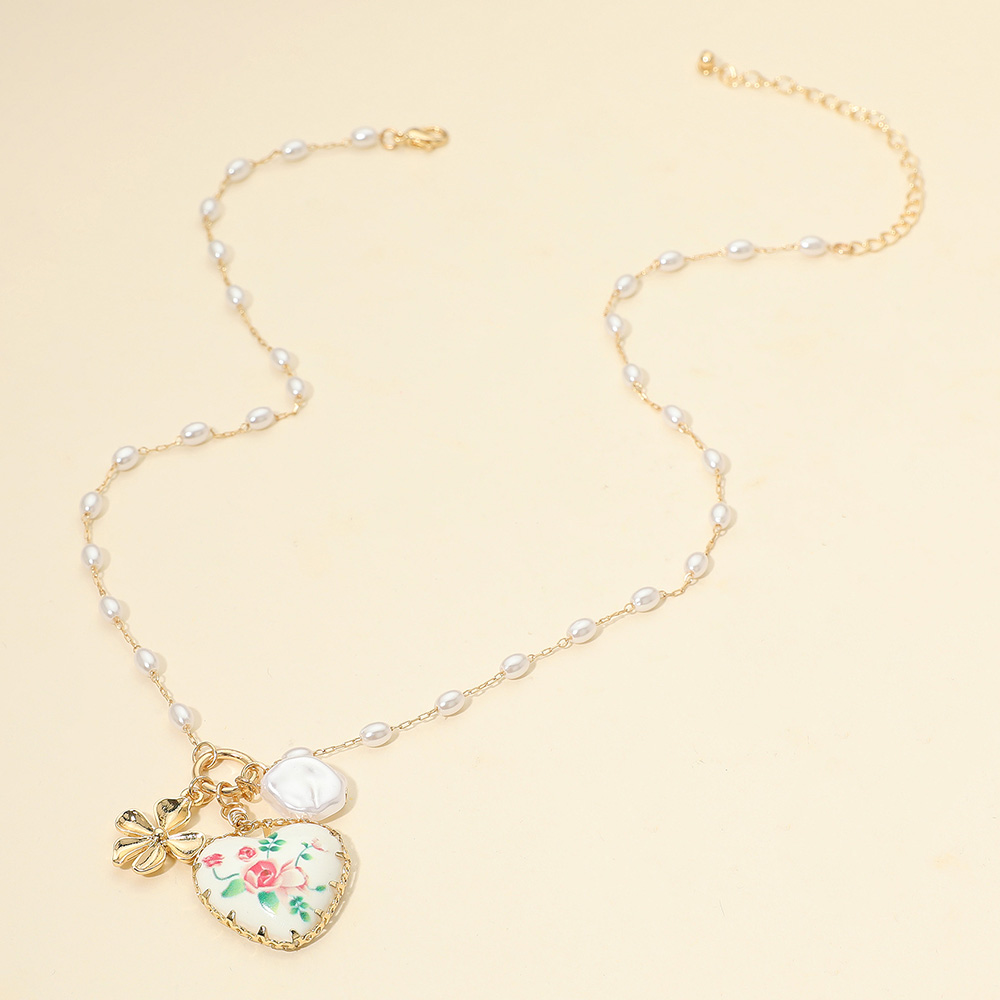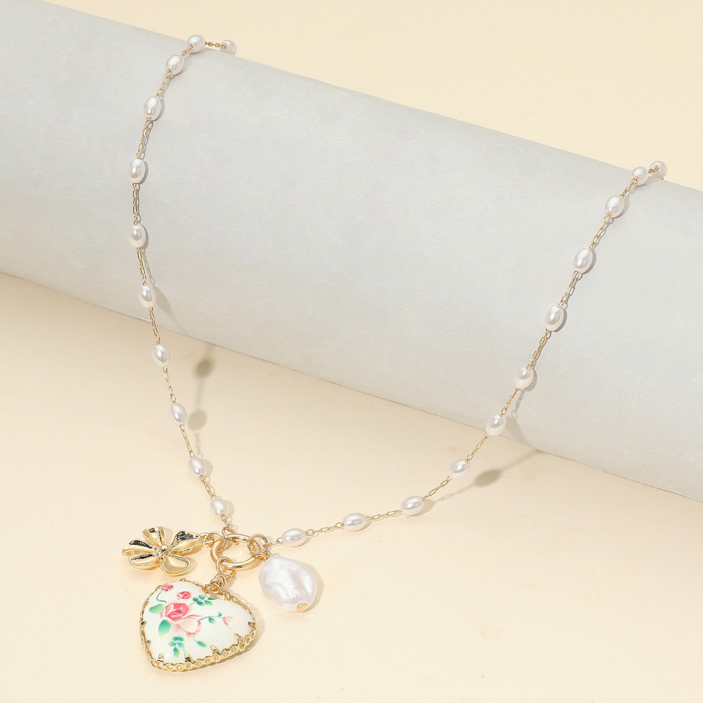 Details • Necklace Size : 17" + 3.5" L • Decor Size : 1.6" L • Bring a touch of romance to your style with this heart pendant necklace featuring delicate floral patterns, pearl accents, and a charming flower detail. Perfect for gifting or accessorizing, this necklace adds elegance and timeless charm to both everyday and special looks. • Lead and Nickel Compliant