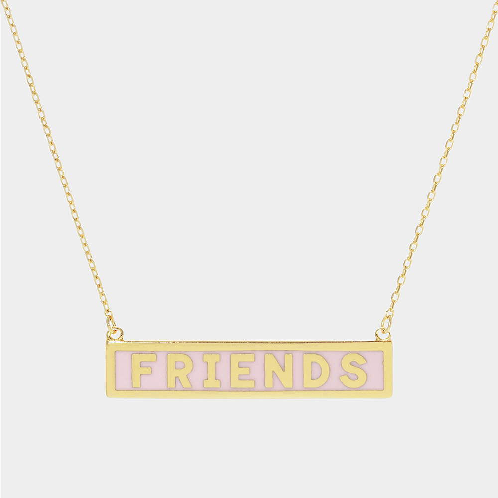 FRIENDS Gold Dipped Enamel Rectangle Message Pendant Necklace
