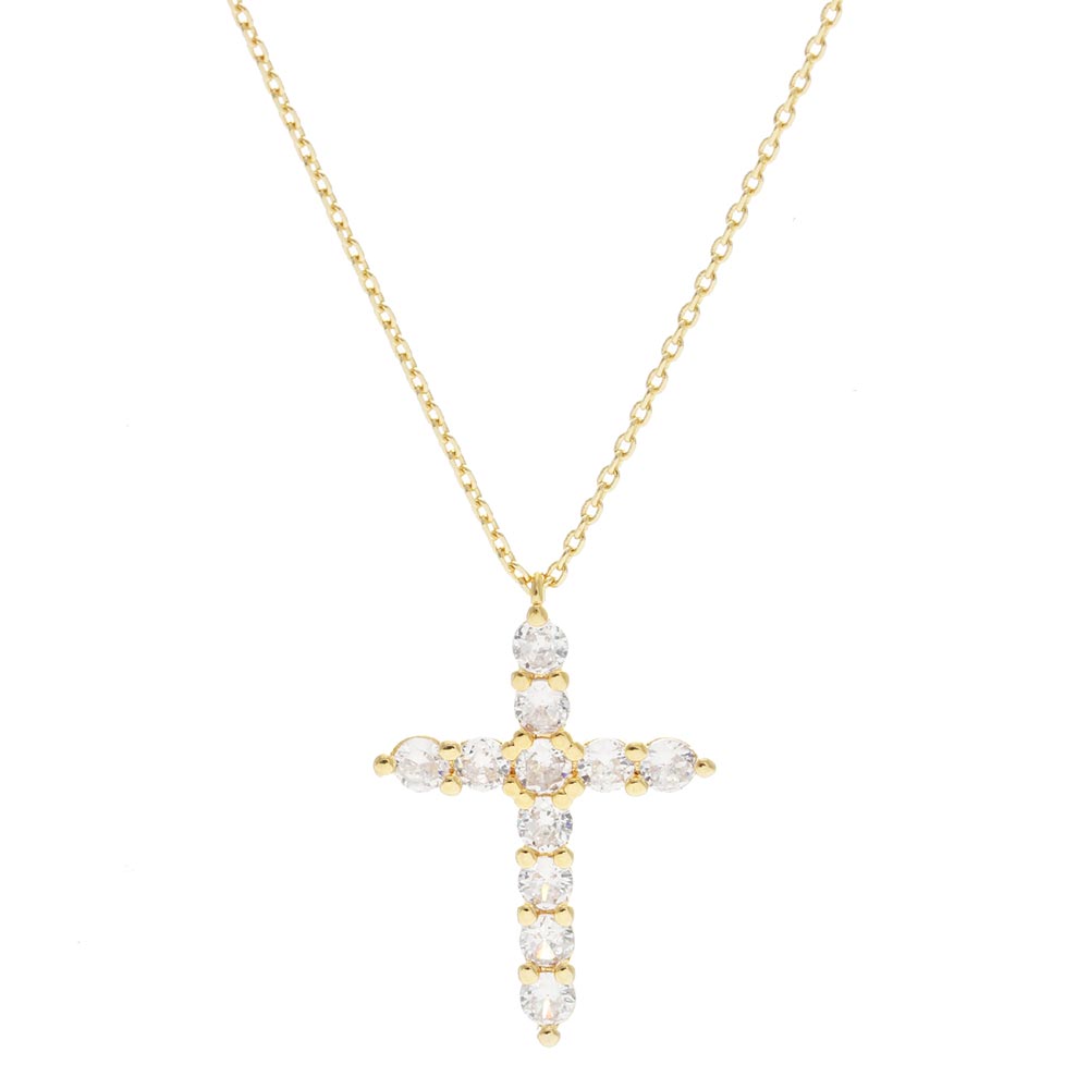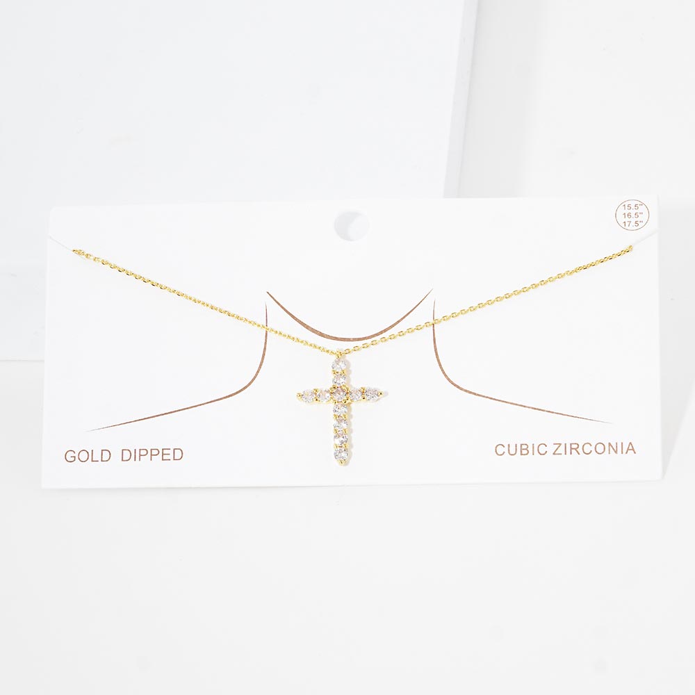 Gold Dipped CZ Cross Pendant Necklace