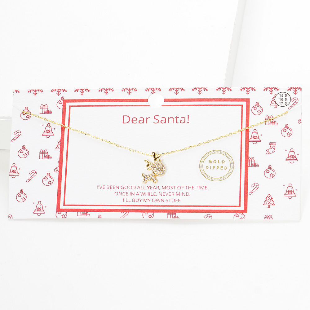 White Gold Dipped CZ Reindeer Pendant Necklace