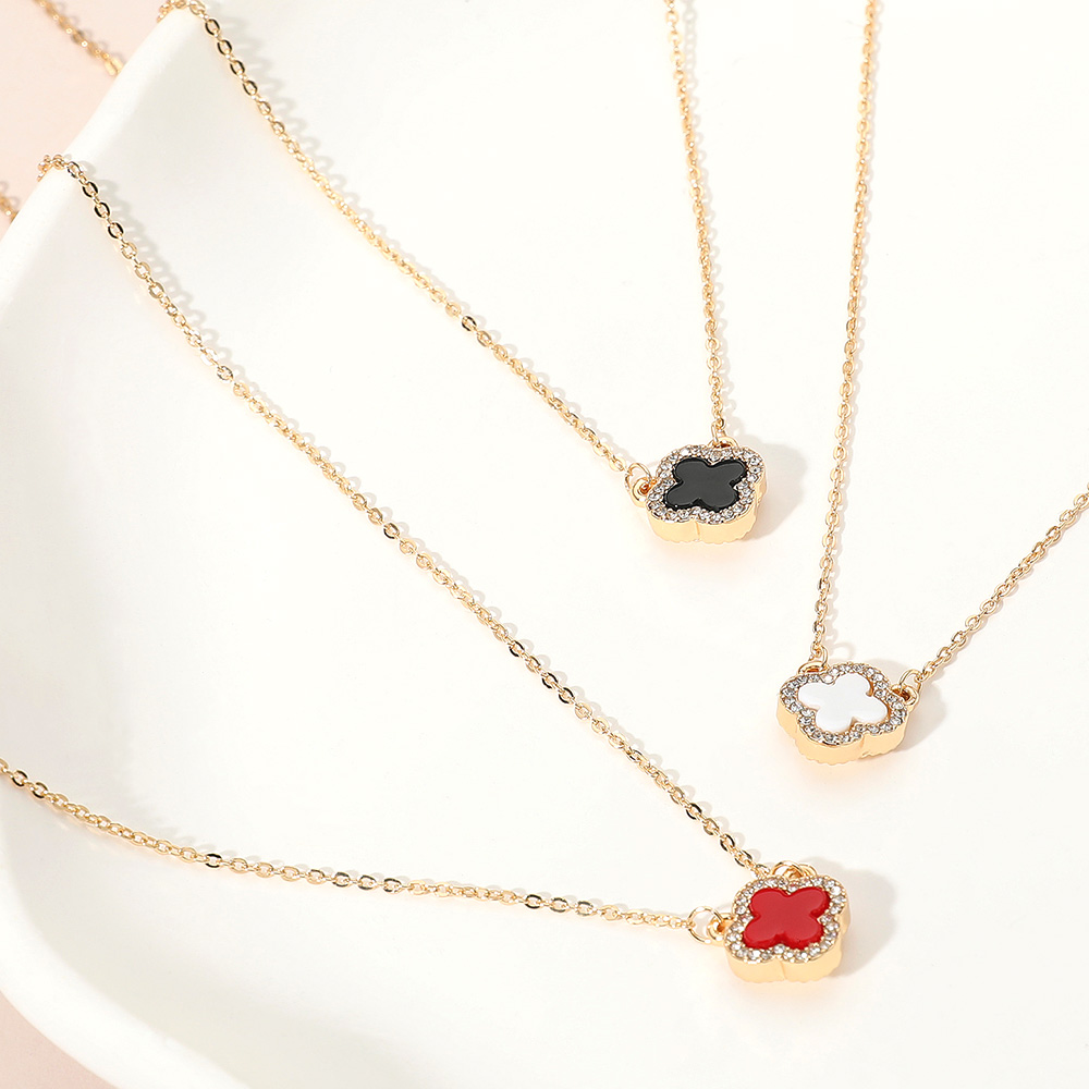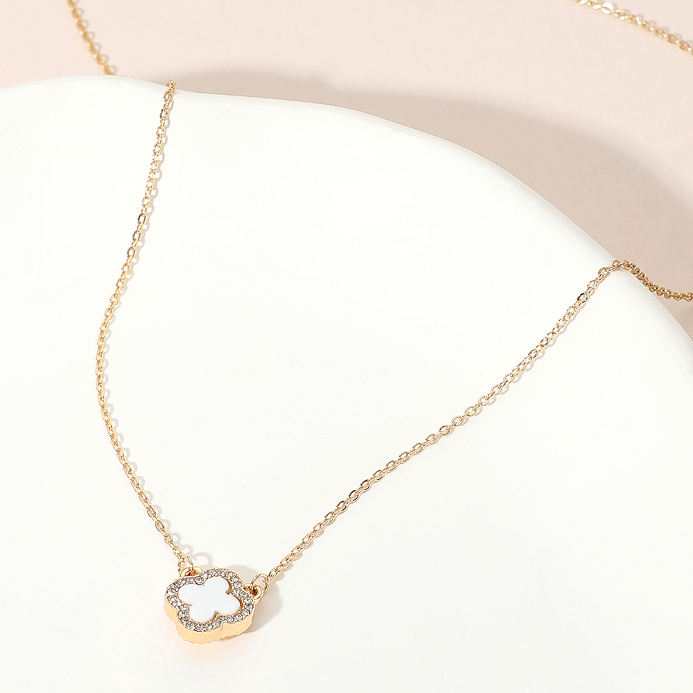 Details • Necklace Size : 16" + 3" L • Pendant Size : 0.5" X 0.5" • This dainty quatrefoil charm pendant necklace showcases a single elegant motif framed by a shimmering border for a refined touch. Its minimalist design and adjustable chain make it perfect for layering or wearing solo, adding a hint of sophistication to both casual and dressy ensembles. • Gold Dipped • Lead and Nickel Compliant