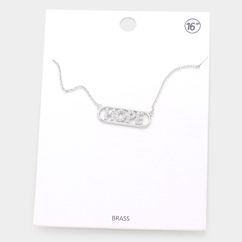 HOPE Brass Rhinestone Embellished Message Pendant Necklace