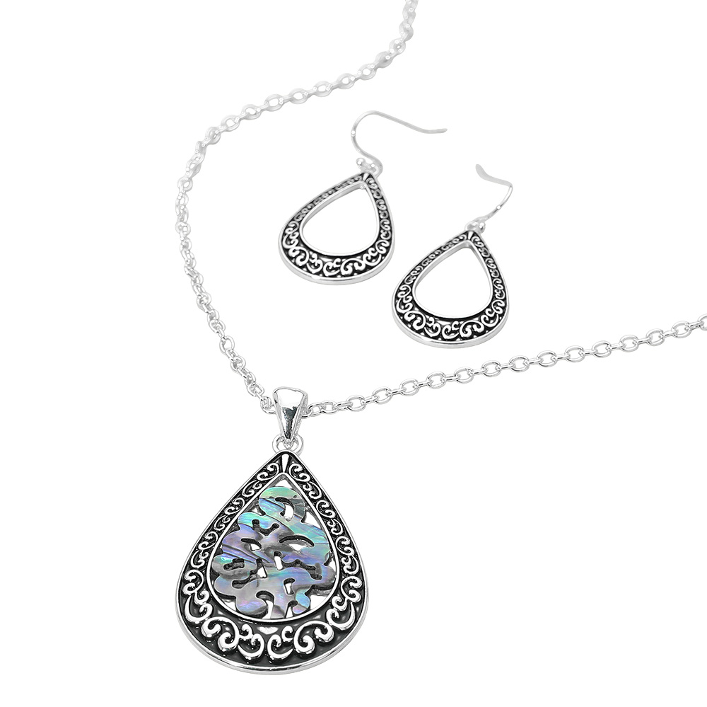 Intricate Scrollwork Abalone Teardrop Pendant Necklace Intricate Scrollwork Abalone Teardrop Pendant Necklace Intricate Scrollwork Abalone Teardrop Pendant Necklace