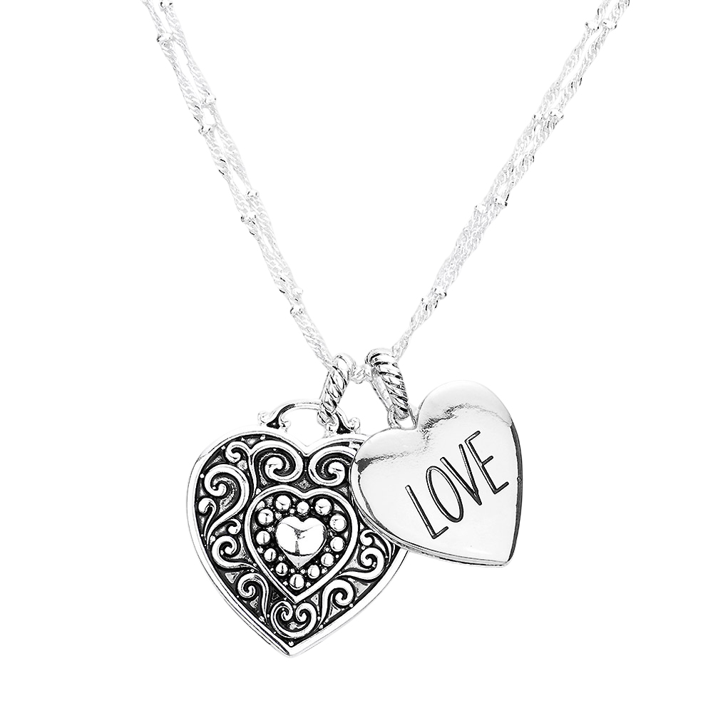 Antique Metal Rose Embossed Heart Pendant Necklace