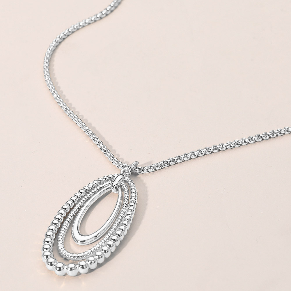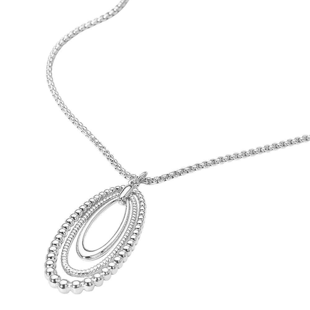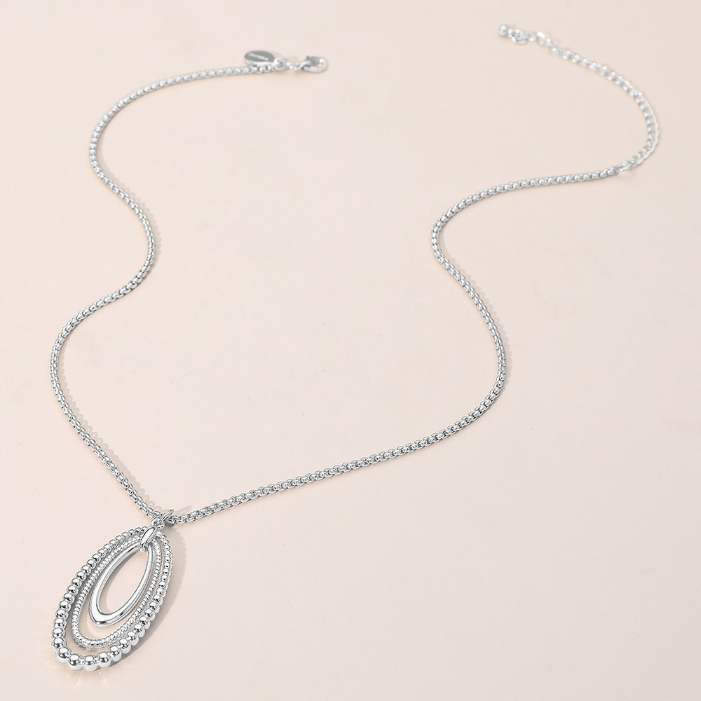 • Chic layered oval pendant necklace featuring smooth and beaded-edge loops for a refined dimensional look. A versatile statement accessory that pairs effortlessly with both casual and dressy outfits, adding timeless elegance and modern charm to any style.