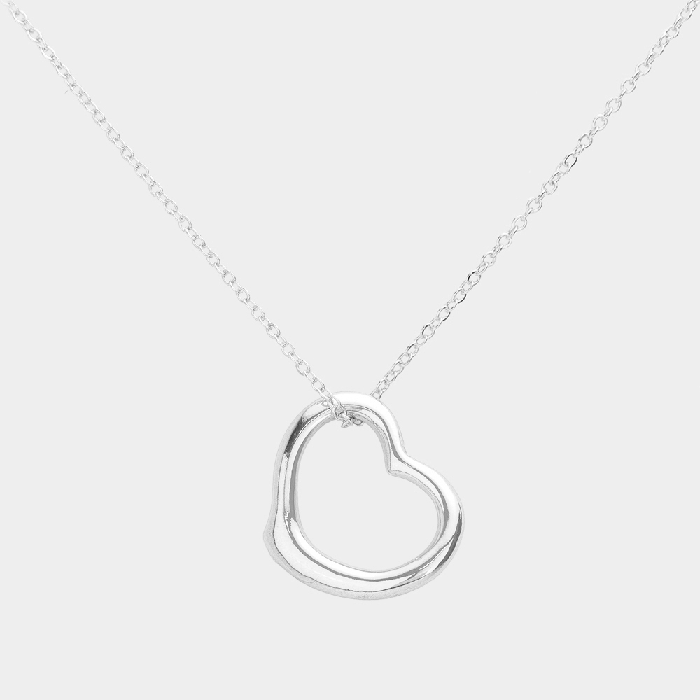 Details • Necklace Size : 15.5" + 2" L • Pendant Size : 0.8" X 1" • Elegant open heart pendant necklace featuring a smooth, minimalist heart charm on a delicate chain. A timeless accessory perfect for daily wear, gifting, or layering with other pieces. Adds a touch of romance and simplicity to any outfit. • Lead and Nickel Compliant