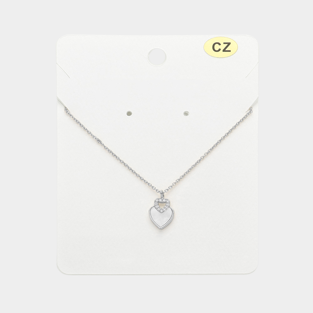 Mother Of Pearl CZ Stone Paved Heart Pendant Necklace