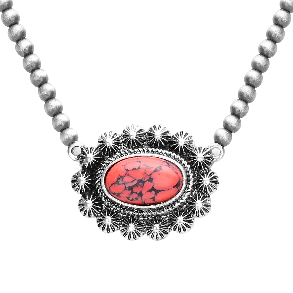 Oval Natural Stone Accented Pendant Necklace