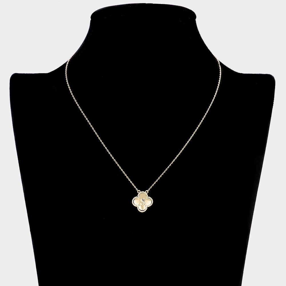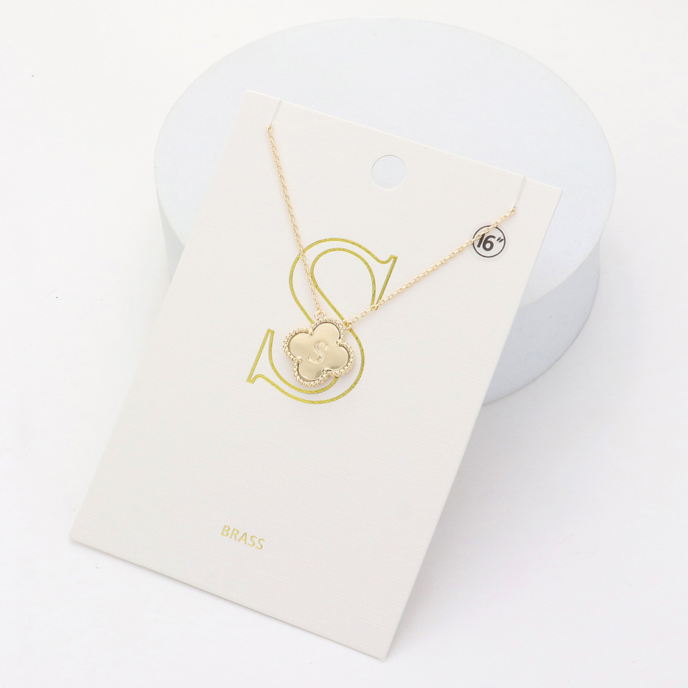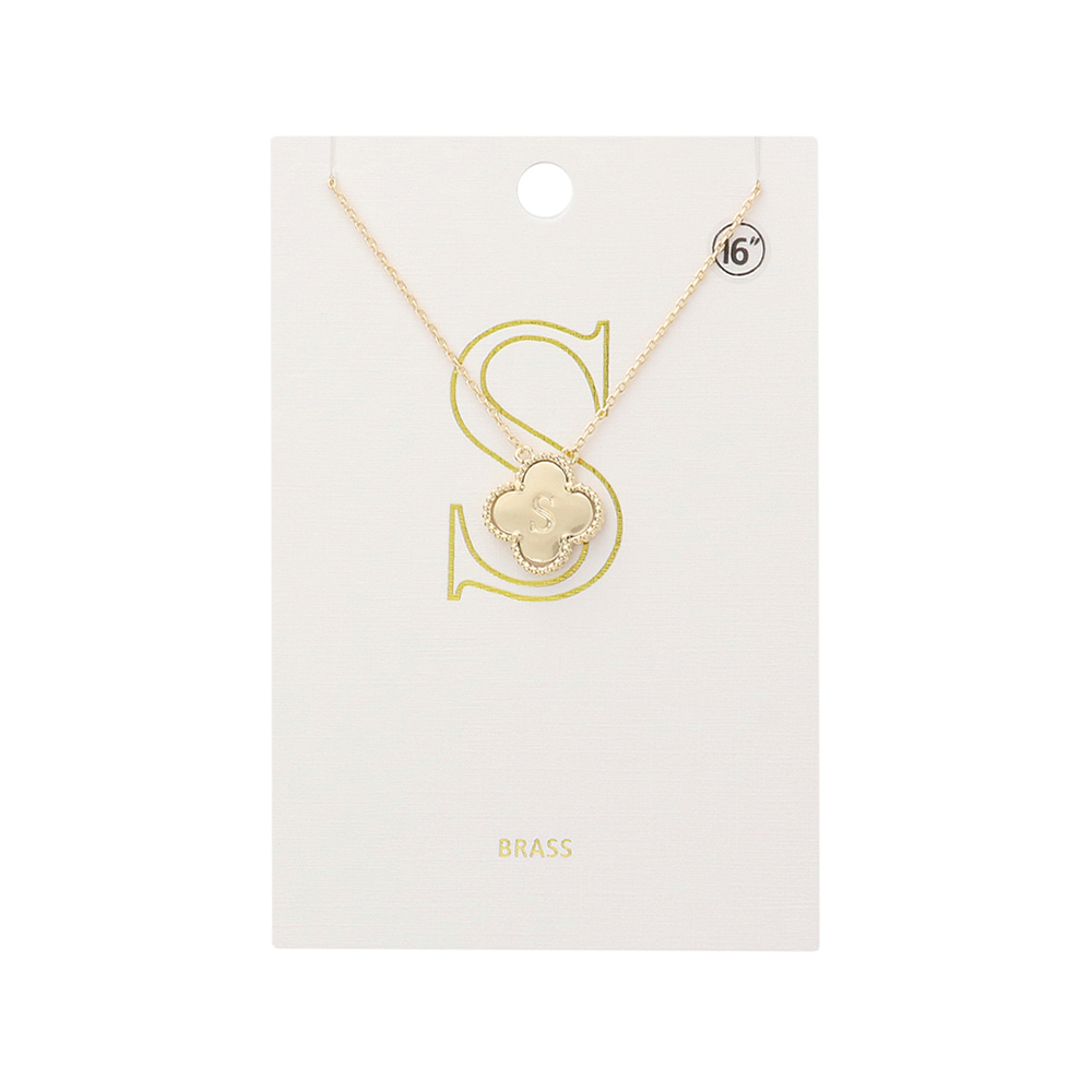 -S- 14K Gold Dipped CZ Stone Paved Initial Monogram Pendant Necklace