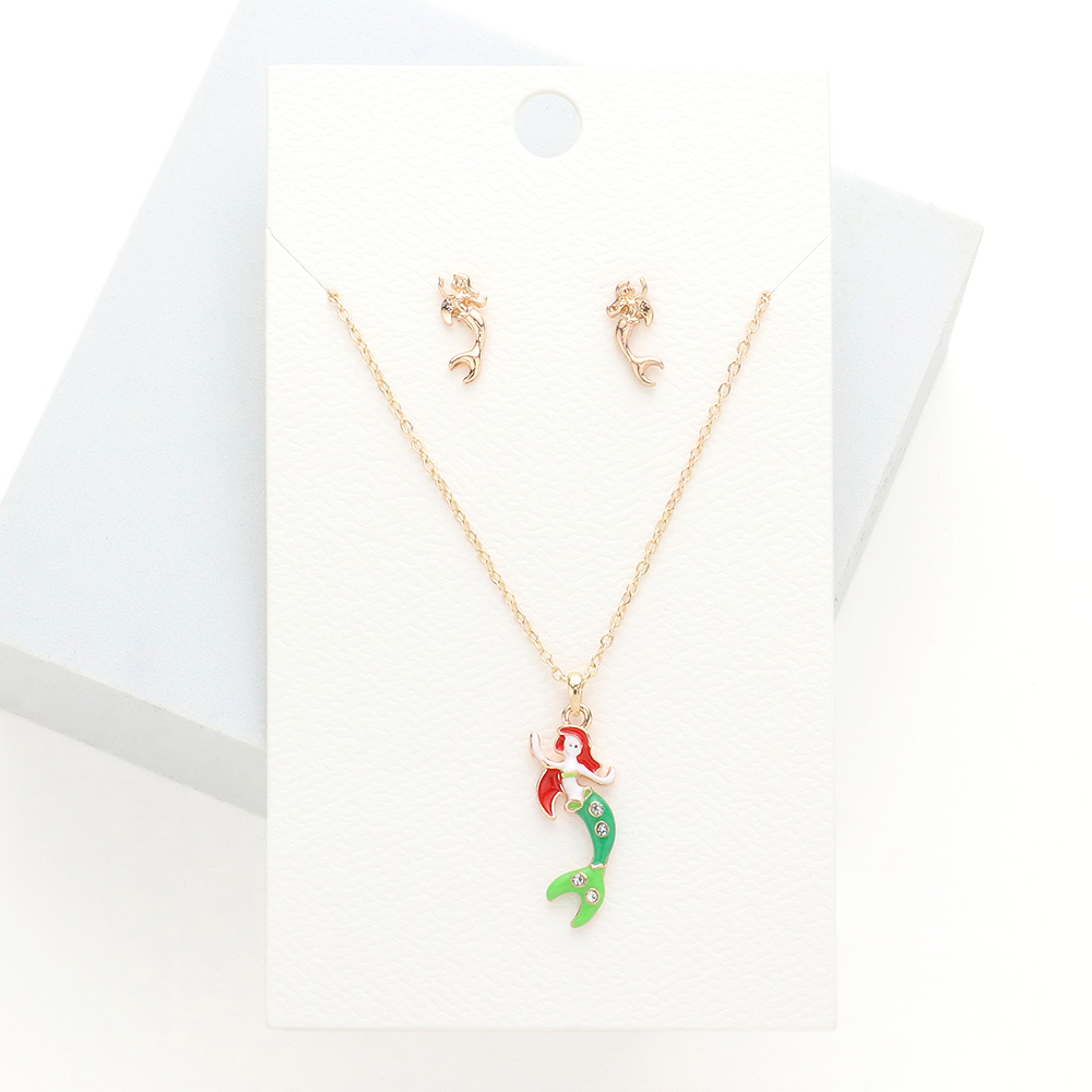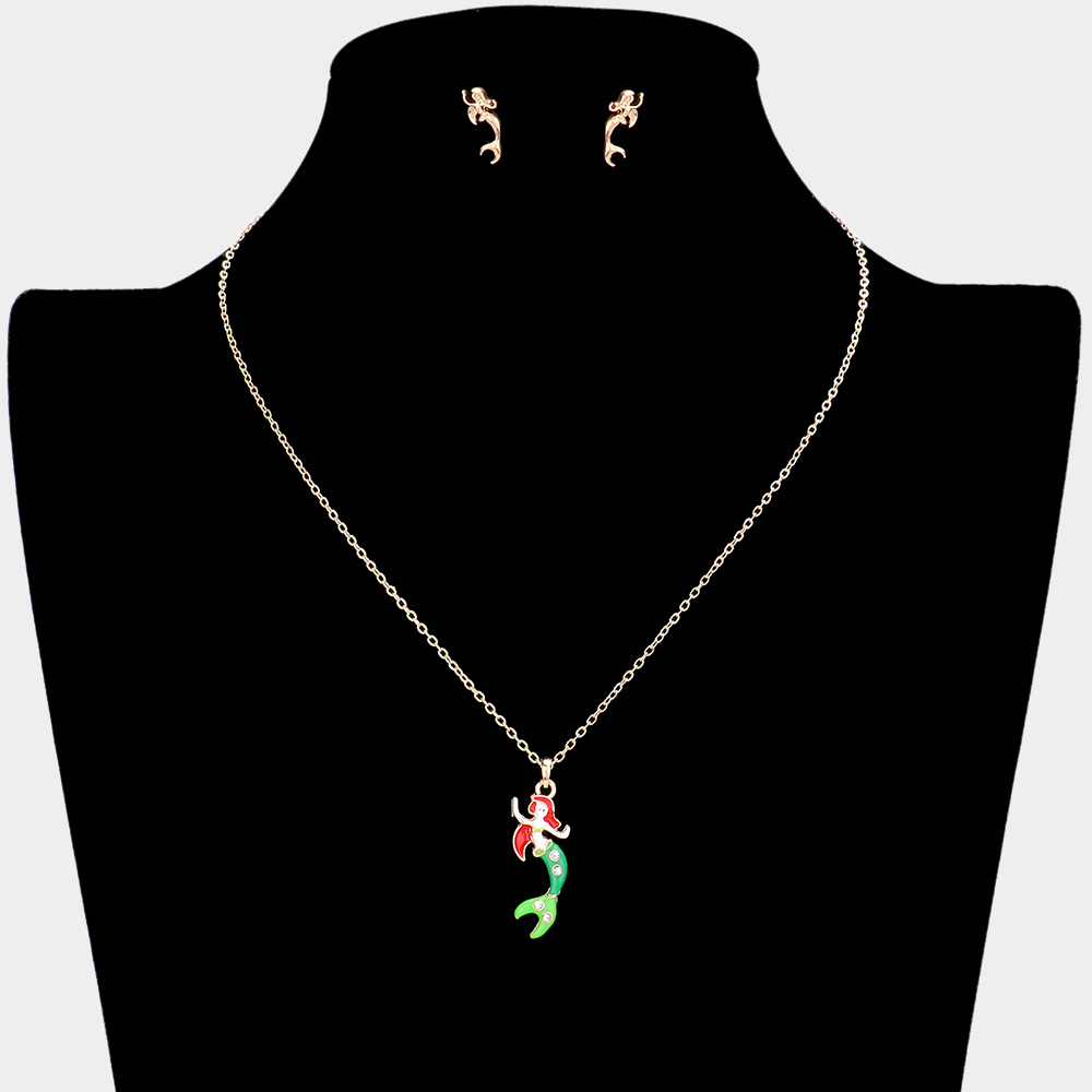 Rhinestone Embellished Enamel Mermaid Pendant Necklace