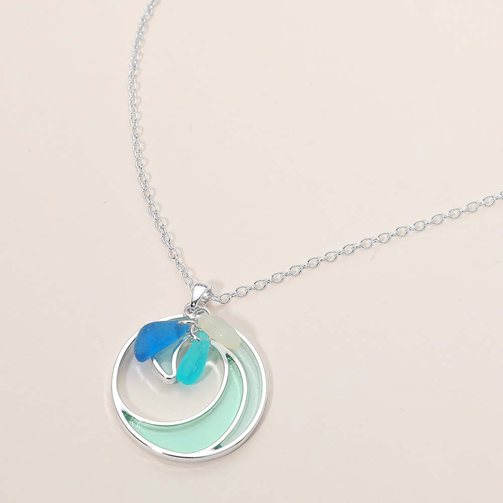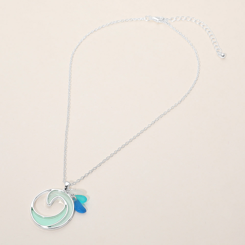 Sea Glass Abstract Ocean Wave Pendant Necklace