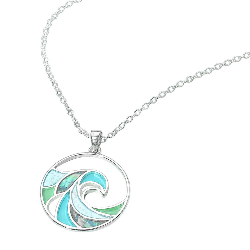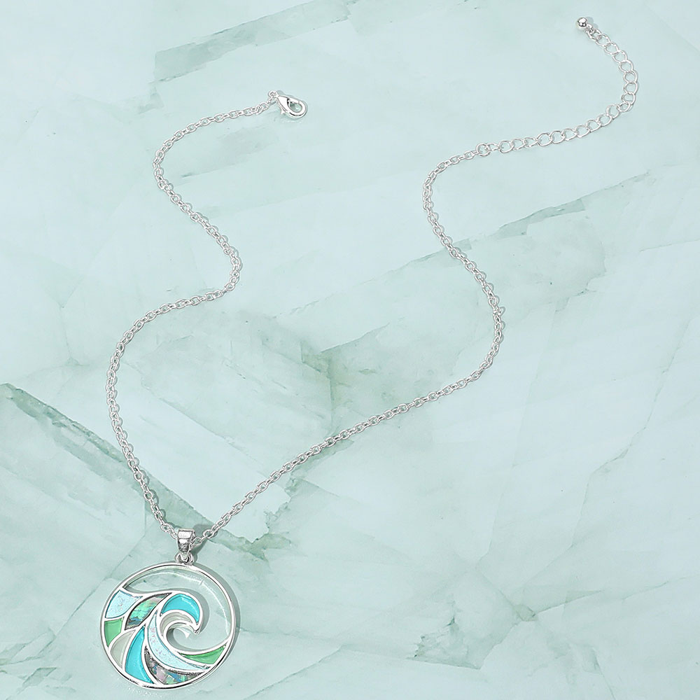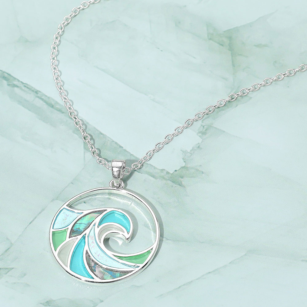 Sea Glass Wave Medal Pendant Necklace