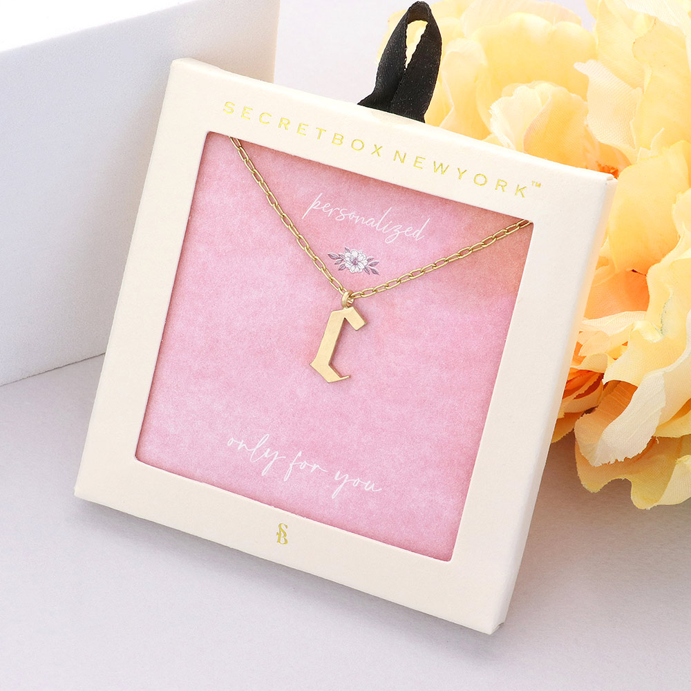 Secret Box -C- Initial Monogram Metal Pendant Necklace