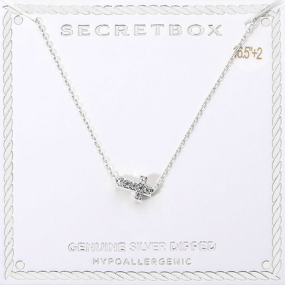 SECRET BOX_Genuine Silver Dipped Hypoallergenic Stone Paved Cross Pendant Necklace SECRET BOX_Genuine Silver Dipped Hypoallergenic Stone Paved Cross Pendant Necklace