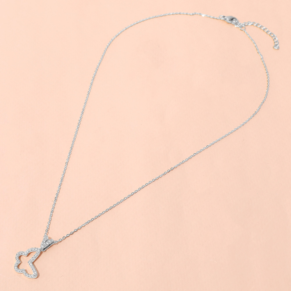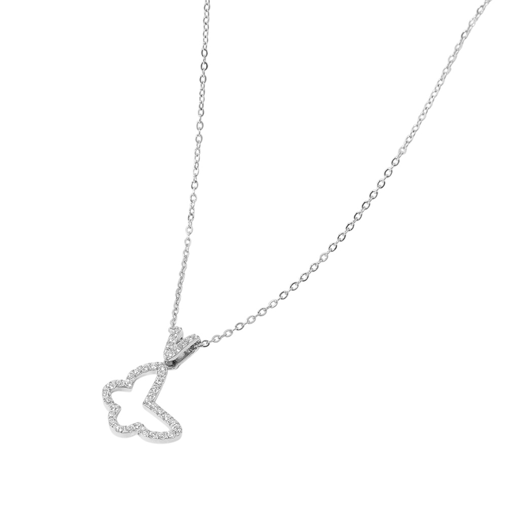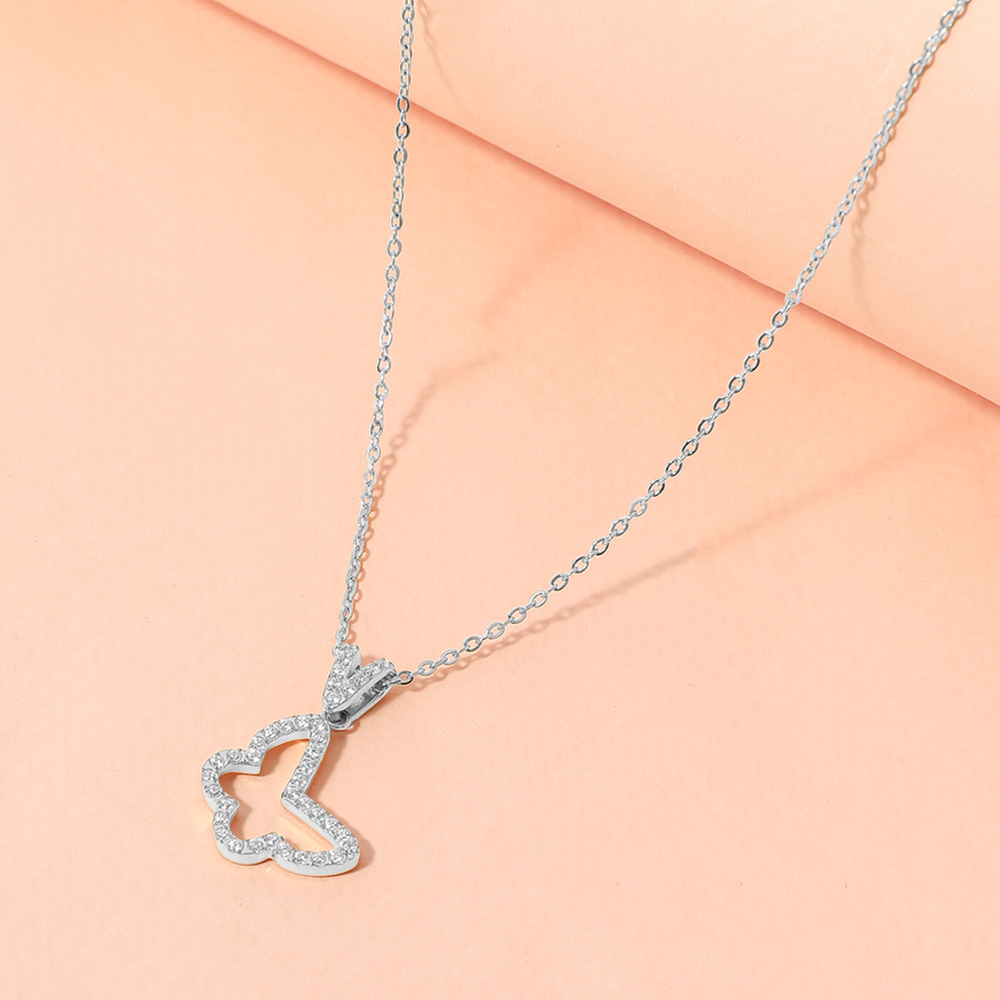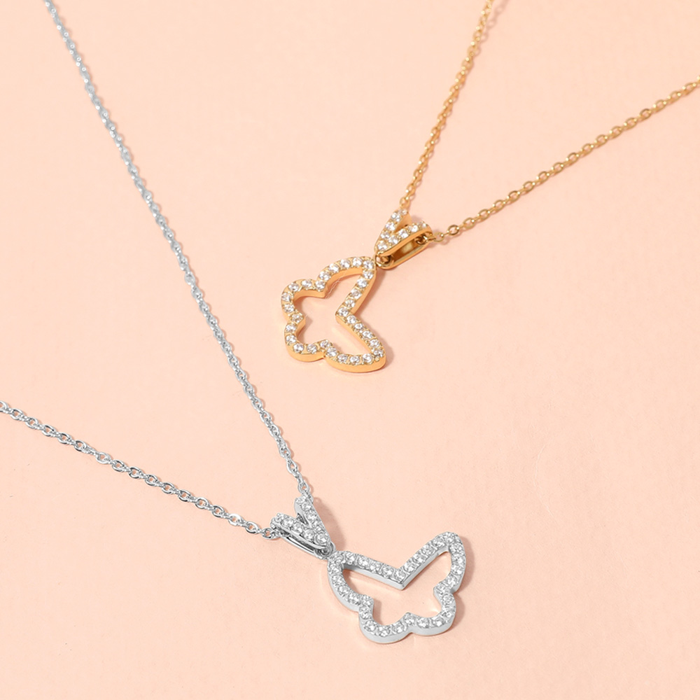 SECRET BOX_Stainless Steel Stone Paved Butterfly Pendant Necklace