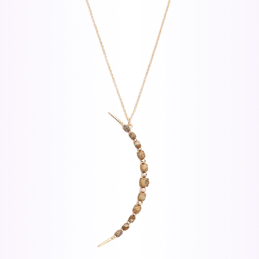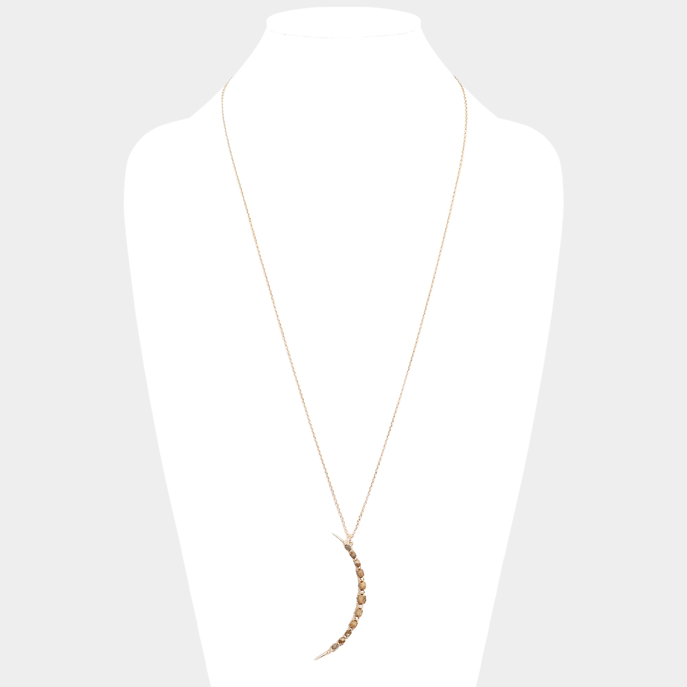 Semi Precious Stone Embellished Metal Crescent Moon Pendant Long Necklace