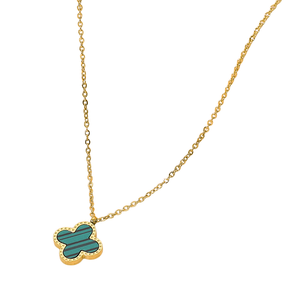 Quatrefoil Stone Pointed Stainless Steel Ball Beaded Stretch Bracelet