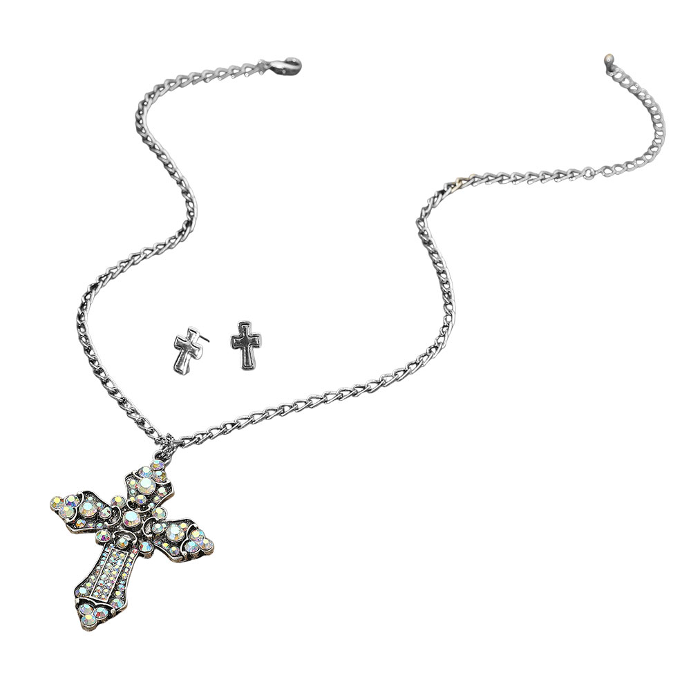 Stone Embellished Cross Pendant Necklace Stone Embellished Cross Pendant Necklace Stone Embellished Cross Pendant Necklace