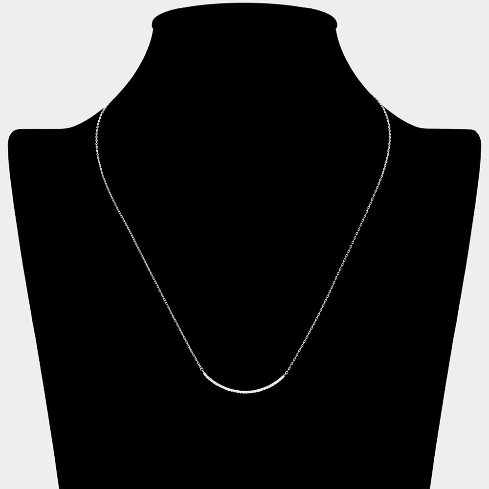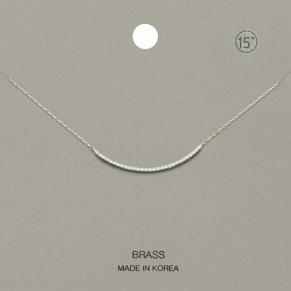 Stone Paved Brass Metal Curved Bar Pendant Necklace