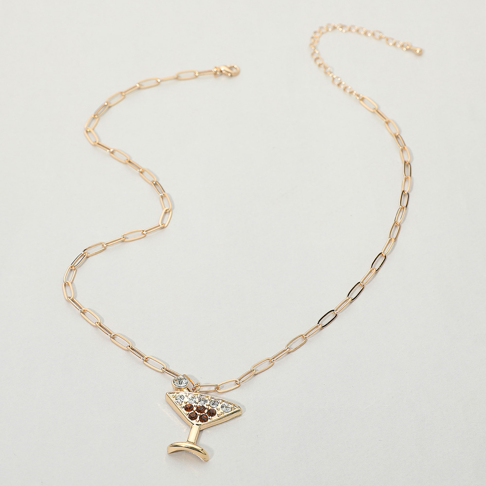 Stone Paved Martini Glass Pendant Paperclip Chain Necklace Stone Paved Martini Glass Pendant Paperclip Chain Necklace Stone Paved Martini Glass Pendant Paperclip Chain Necklace