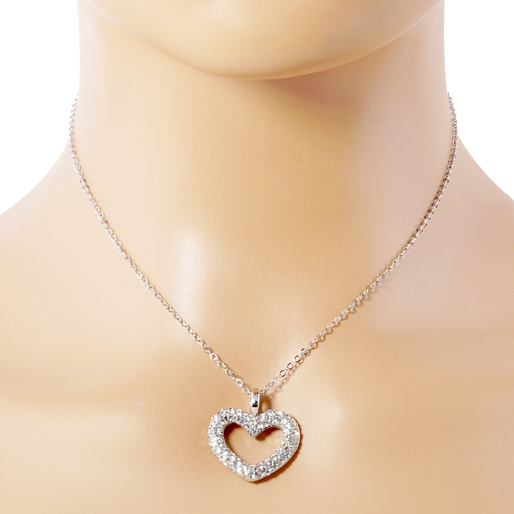 14K Gold Plated Two Tone Ball Beaded CZ Stone Paved Heart Pendant Necklace