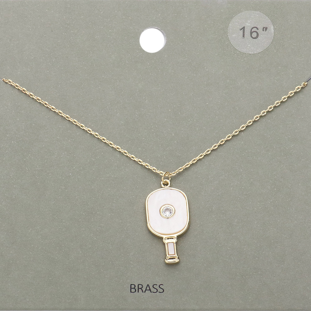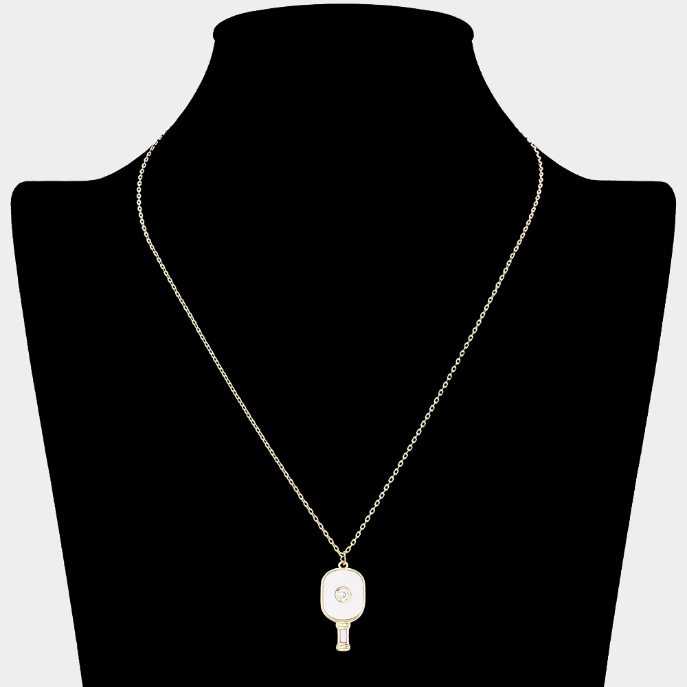 Stone Pointed Enamel Pickleball Paddle Pendant Necklace