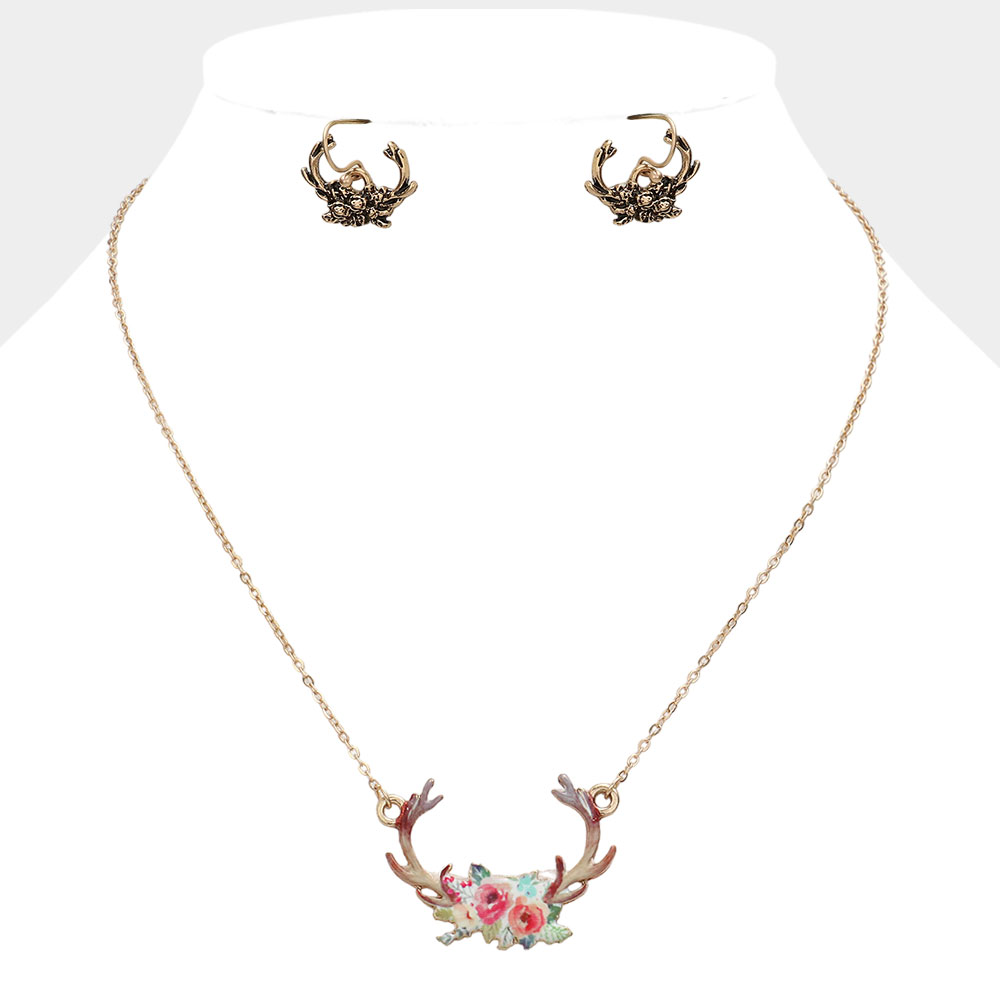 Watercolor Enamel Deer Horn Jewelry Charm Pendant Necklace