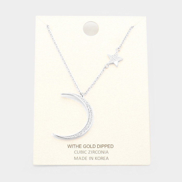 White Gold Dipped Cubic Zirconia Moon Star Pendant Necklace