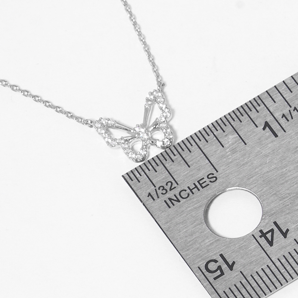 White Gold Dipped CZ Stone Paved Butterfly Pendant Necklace
