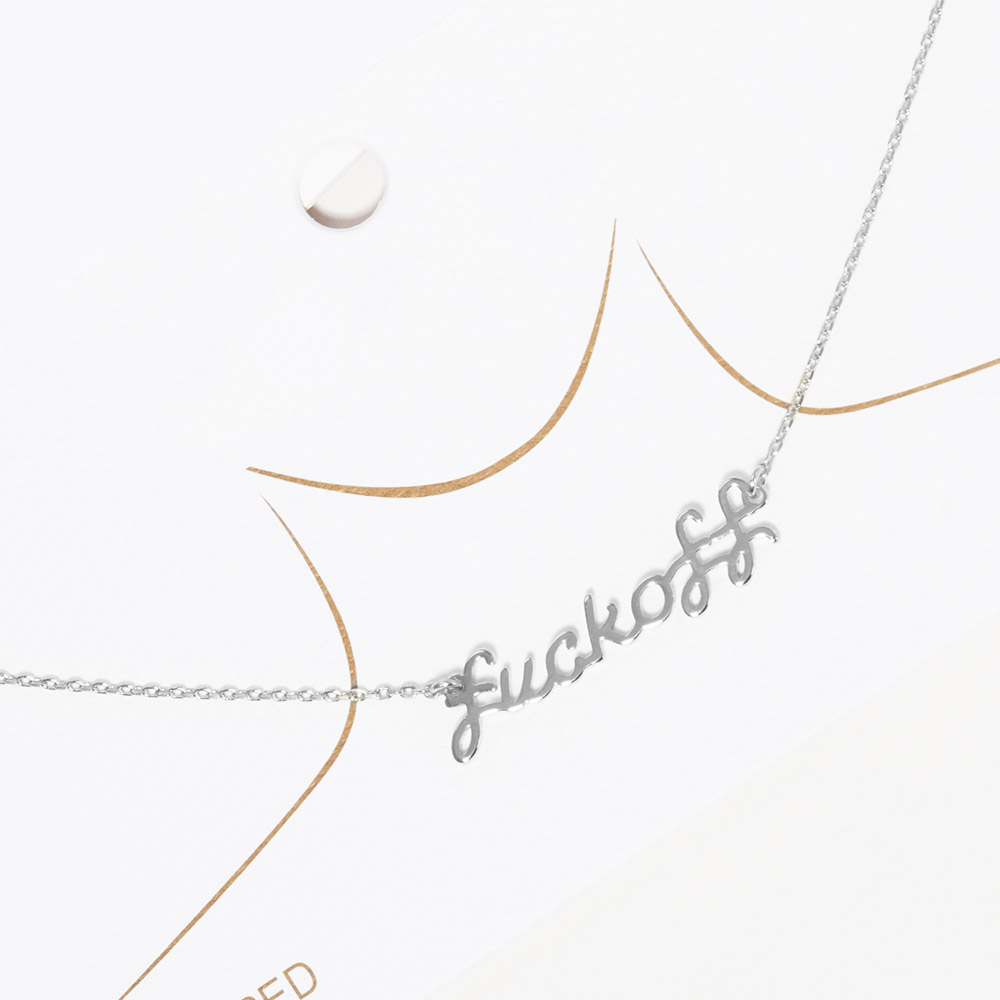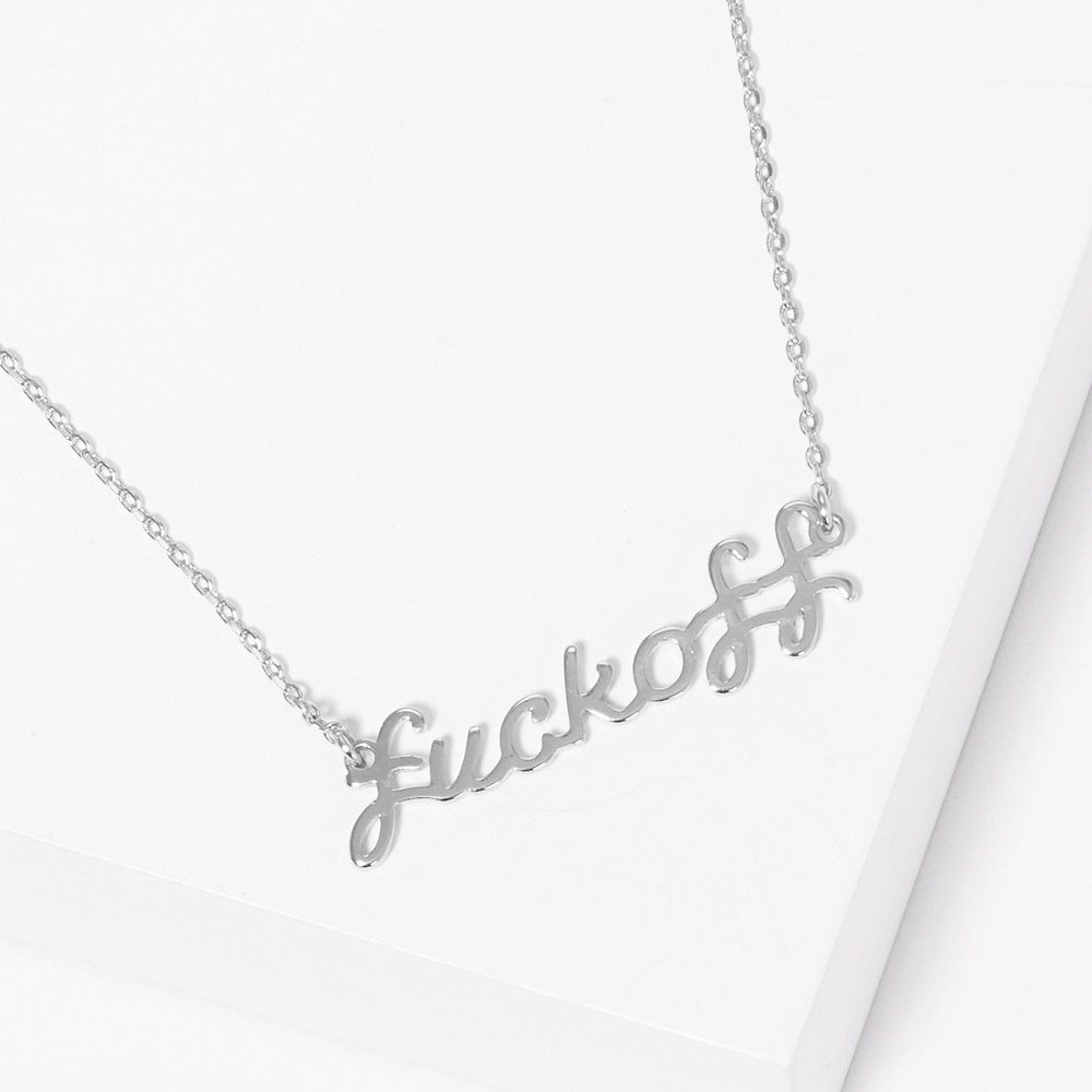 White Gold Dipped Fxxx Off Message Pendant Necklace