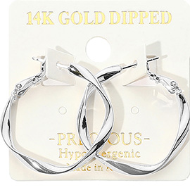 Textured Three Tone Metal Hoop Pin Catch Earrings