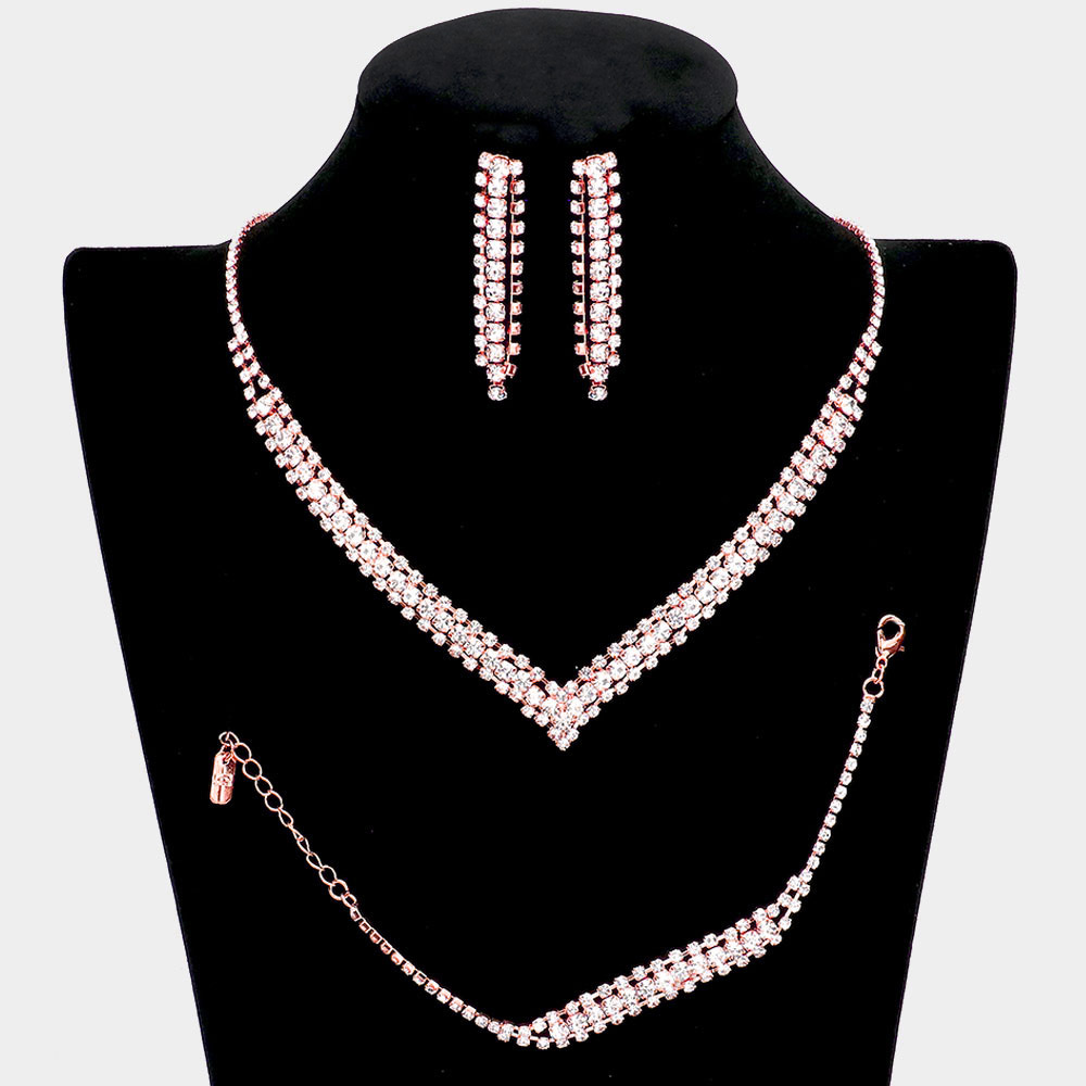 3PCS - Round Stone Detail Rhinestone Necklace Jewelry Set