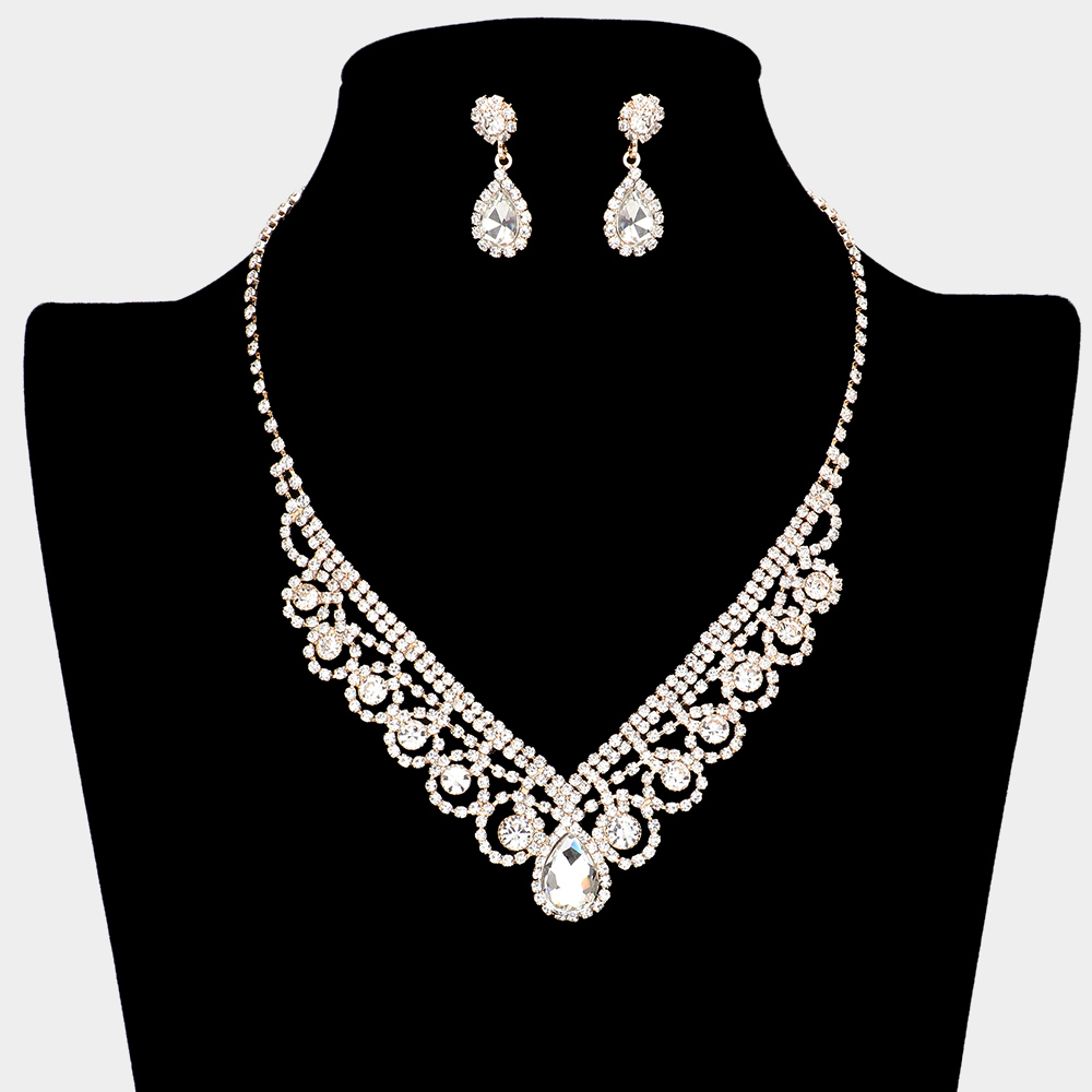 Bubble Crystal Cluster Teardrop Centered Necklace