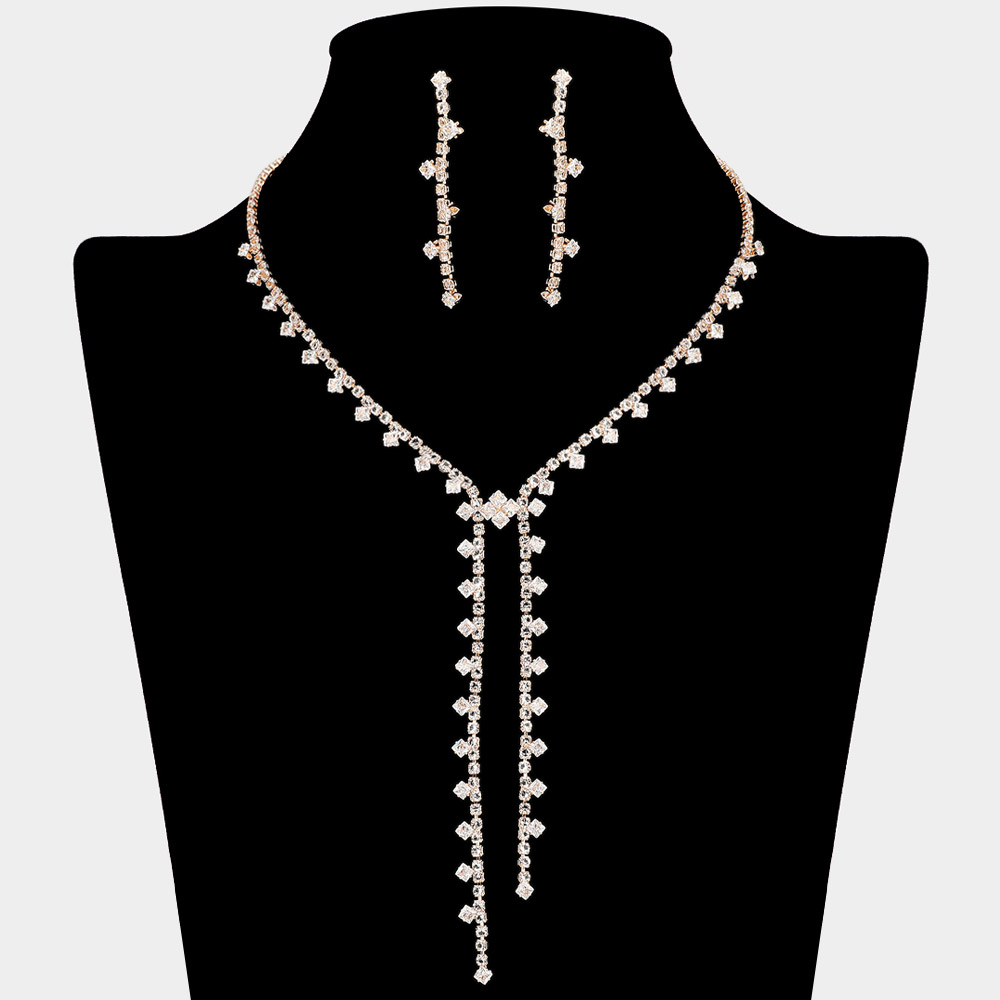 • Enhance your evening style with this Cascading CZ Drop Necklace and Earring Set. The elegant Y-shaped necklace features delicate crystal accents paired with matching linear earrings, offering a refined and glamorous finish for formal events, parties, or special celebrations.