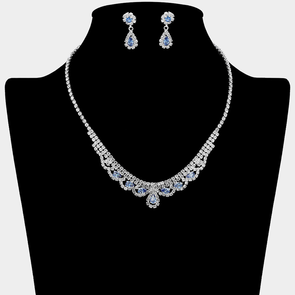 • Shine at any special occasion with this teardrop crystal necklace and earring set. Featuring a layered design with sparkling accents, it adds elegance and sophistication to bridal, prom, or evening looks. A striking accessory set for standout style.