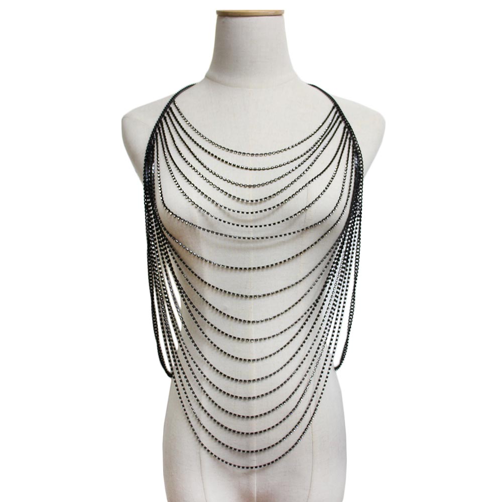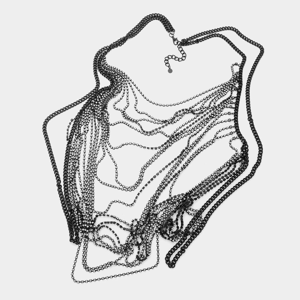 Draped Crystal Rhinestone Pave Bib Body Chain Necklace