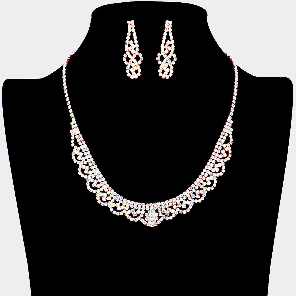 Rhinestone Pave Teardrop Collar Necklace & Clip Earring Set