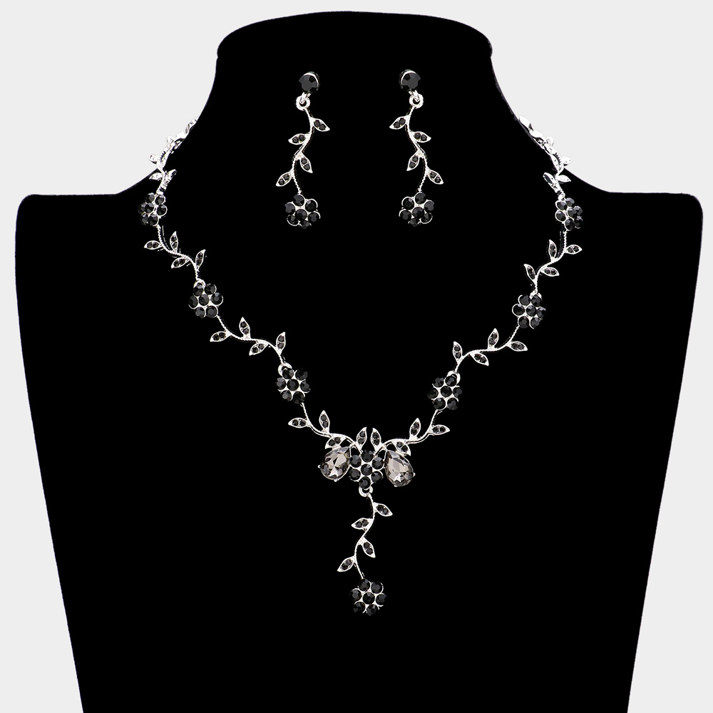 Flower Leaf Cluster Vine Rhinestone Necklace