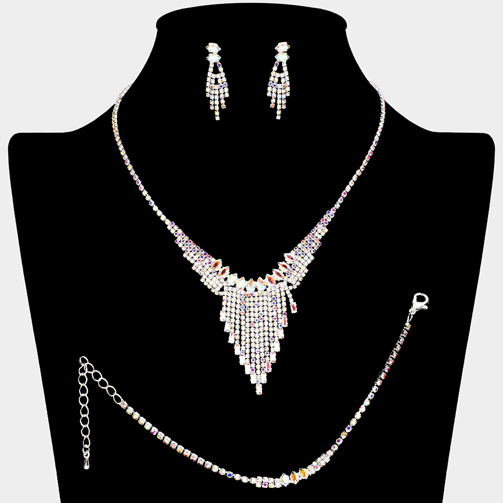 Marquise CZ Stone Pointed Rhinestone Paved Fringe Necklace