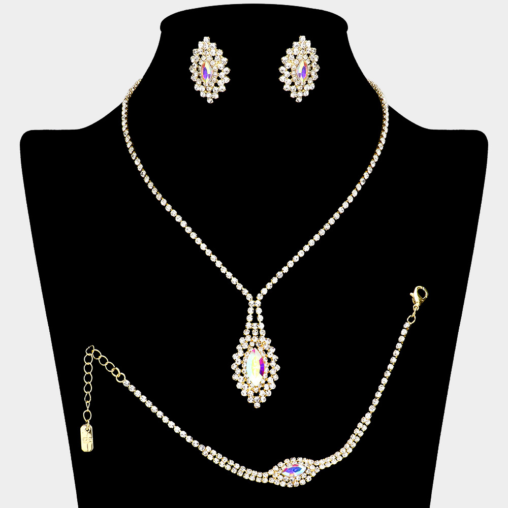 Marquise Stone Accented Rhinestone Paved Jewelry Set
