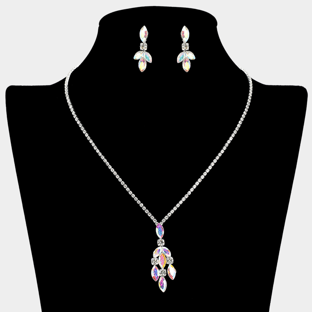 • Stylish necklace and earring set with teardrop and marquise-cut stones. Ideal for weddings, parties, and elegant evenings. Adds a sparkling touch of sophistication to any special occasion.