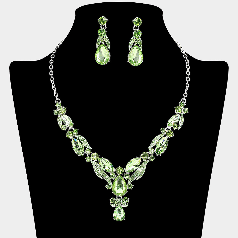 Marquise Teardrop Cluster Embellished Evening Necklace
