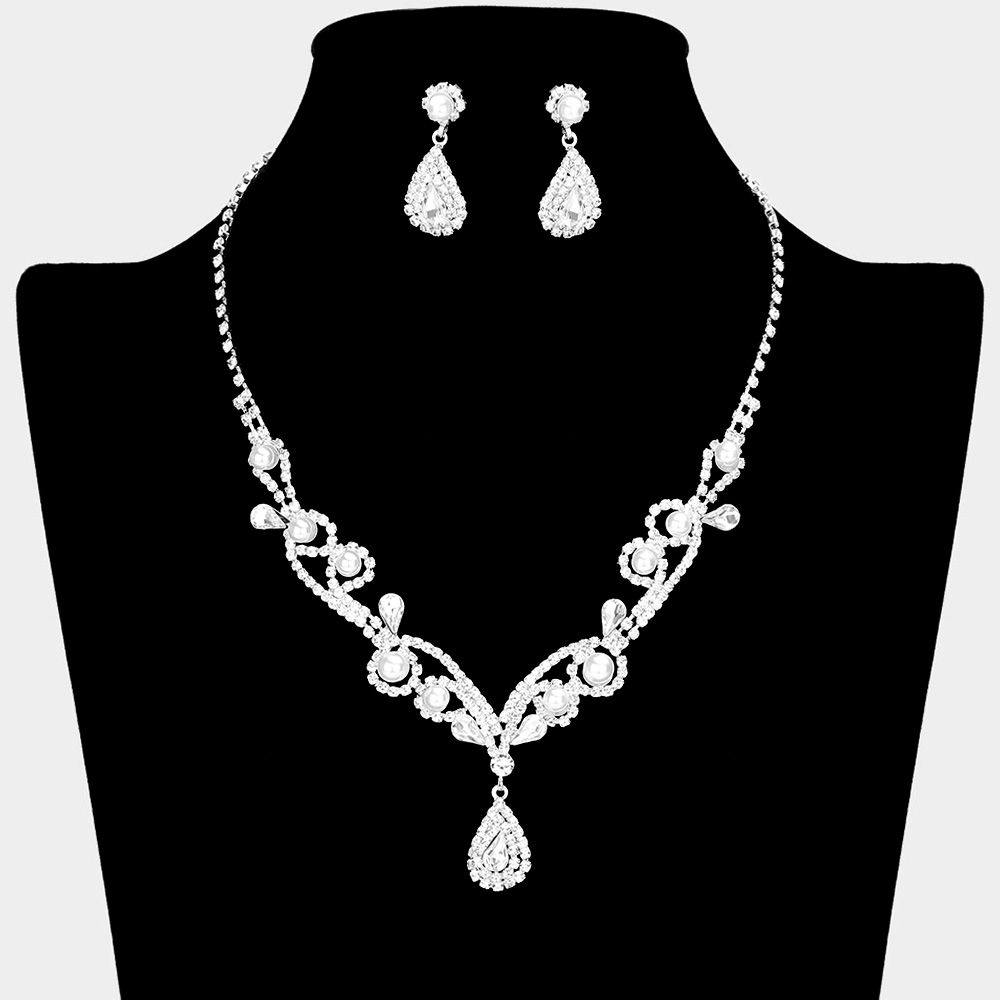 3PCS Crystal Detail Pearl Necklace Jewelry Set