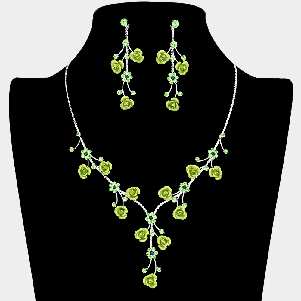 Rhinestone Embellished Rose Flower Cluster Vine Necklace