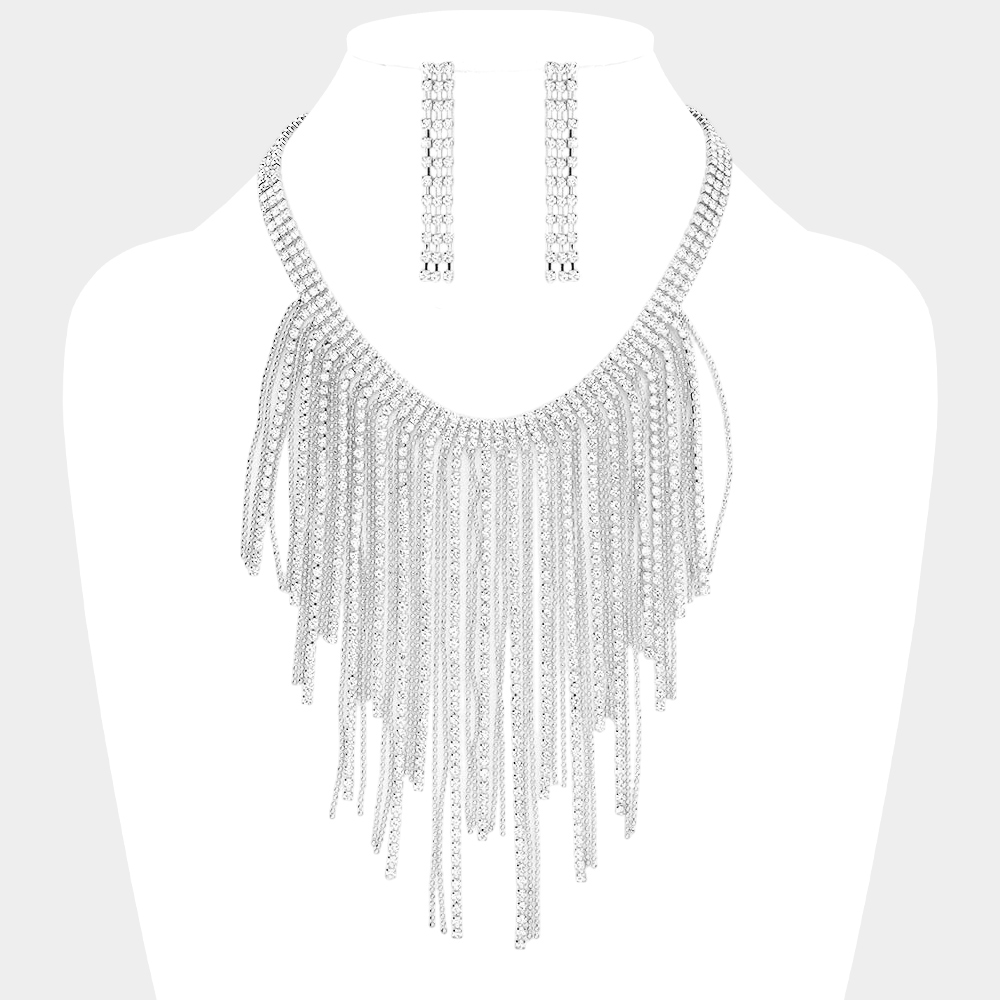 Crystal Rhinestone Fringe V Shaped Necklace