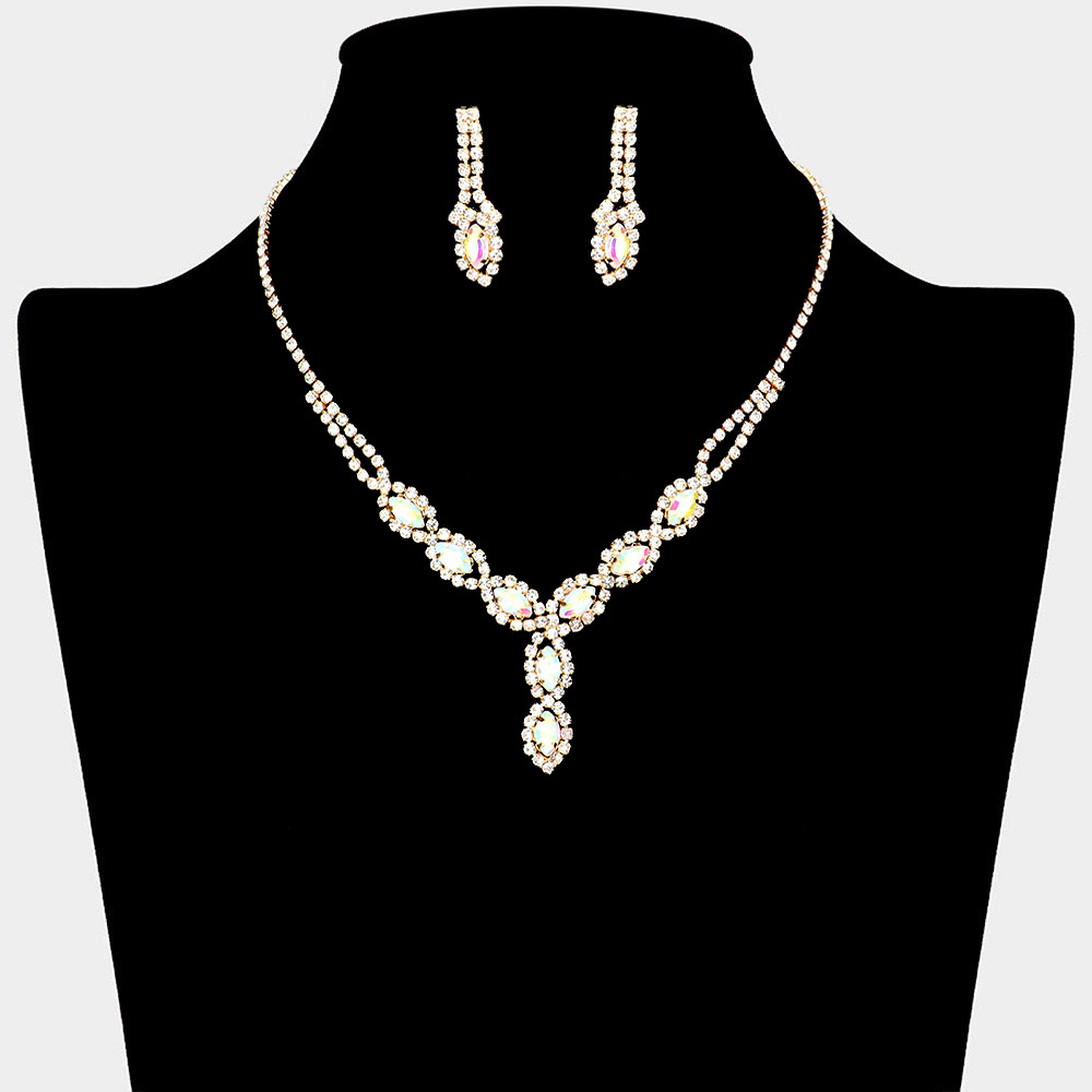 Details • Necklace Size : 12" L + 5" L • Decor Size : 1.25" L • Earring Size : 1.25" L • Add a touch of classic allure with this Elegant Teardrop Crystal Necklace and Earring Set. Featuring a graceful cascading design of radiant crystals, this refined ensemble captures timeless beauty—perfect for weddings, formal gatherings, or any event that calls for sophistication.