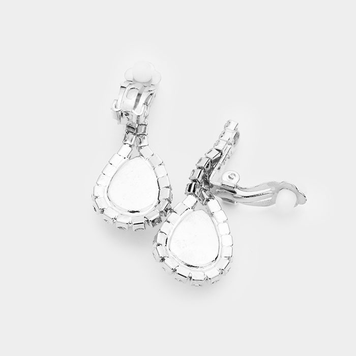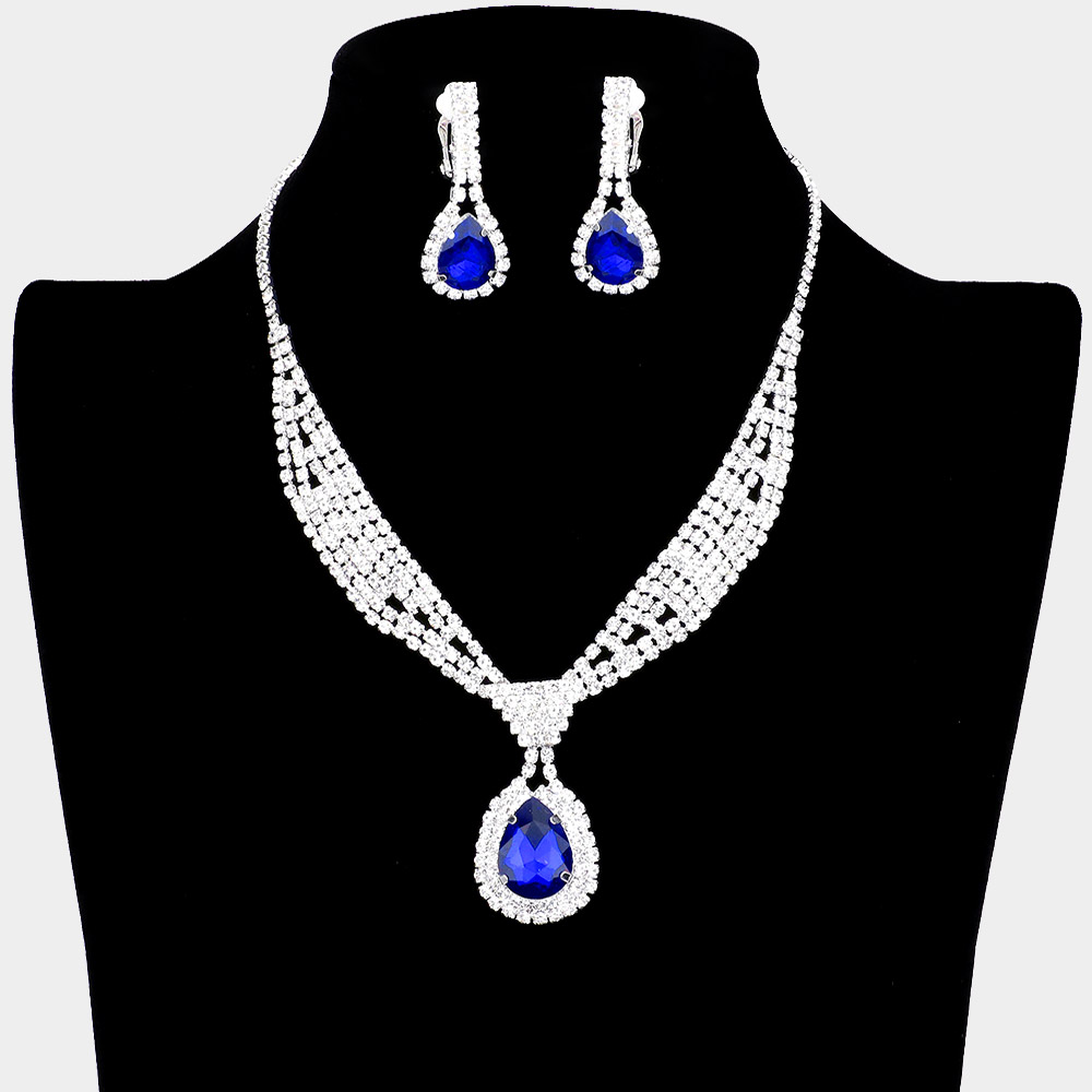 Rhinestone Pave Teardrop Collar Necklace & Clip Earring Set